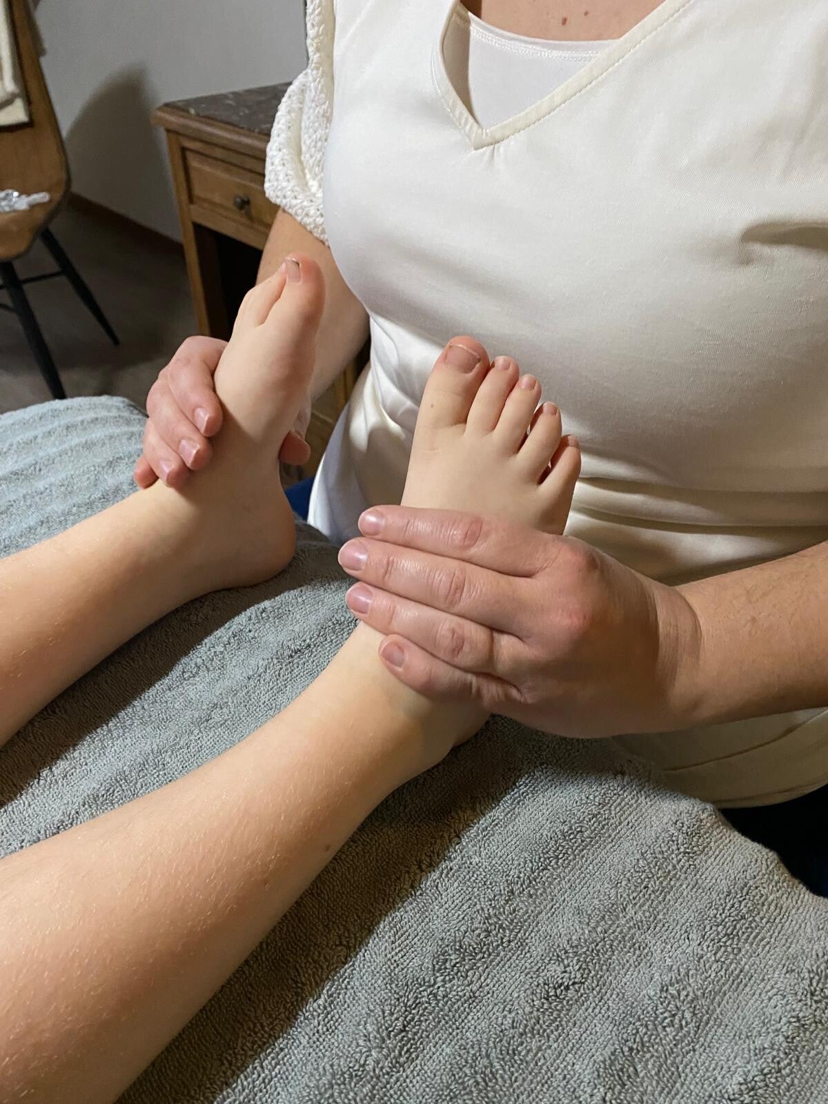 Bij binnenkomst ontvangt je een warm voetenbad met magnesium & een etherische olie. Dit zorgt ervoor dat je voeten lekker opwarmen. De magnesium & olie zorgen ervoor dat de spieren ontspannen. Dit is een positief begin voor de massage nadien.